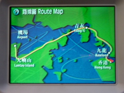 Vom Airport aus begibt man sich, wie schon erwähnt, auf einen 25 Minuten Trip über ein, zwei Inseln, eine kurze Strecke über das chinesische Festland und dann rüber nach HongKong Island.